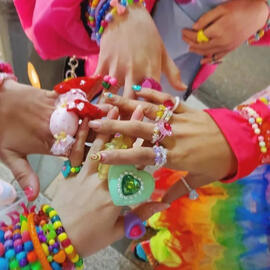 だんだんとカラフルなものを身につけて、気づいたら沢山アクセサリーを付けるようになりました。そんな時デコラを知り、私のファッションジャンルはデコラだと知りました"